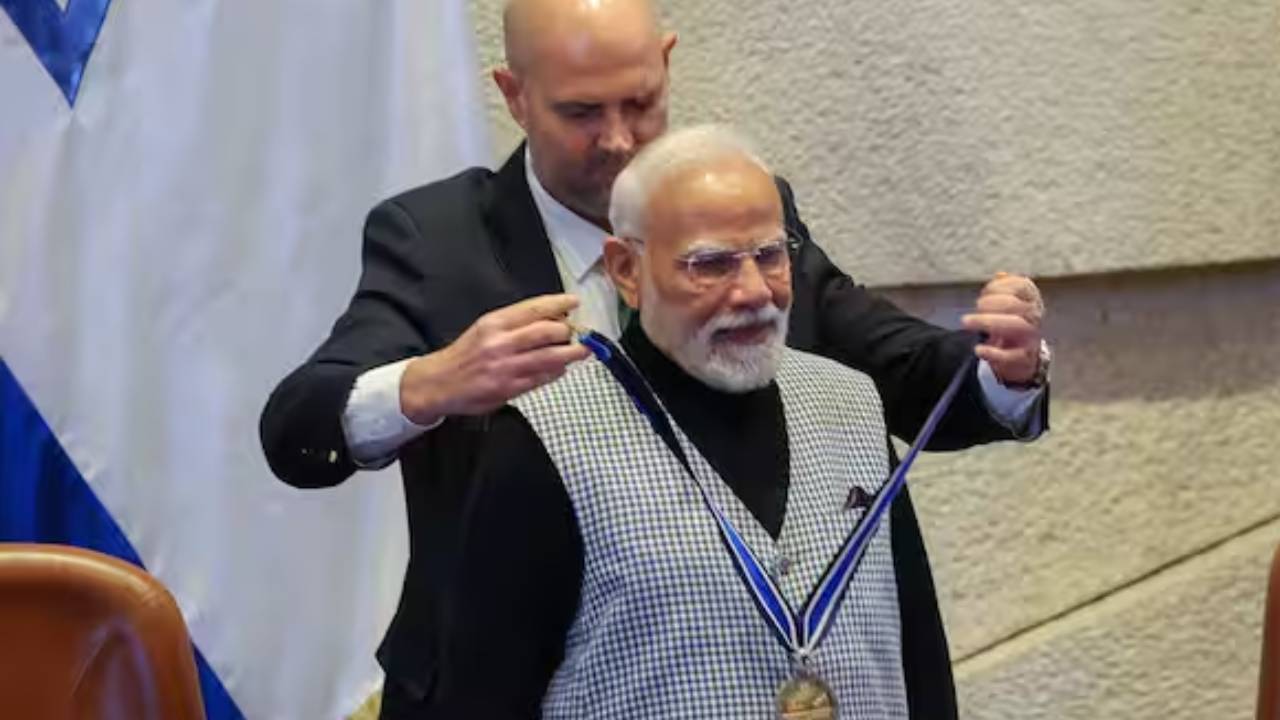 प्रधानमंत्री नरेंद्र मोदी दो दिन के इजराइल दौरे पर है और इस दौरान इजराइली प्रधानमंत्री बेंजामिन नेतन्याहू और उनकी पत्नी सारा नेतन्याहू ने एयरपोर्ट पर रिसीव किया। पीएम मोदी ने इजराइली संसद नेसेट को संबोधित किया। इस दौरान उन्हें संसद का सर्वोच्च सम्मान ‘स्पीकर ऑफ द नेसेट मेडल’ से नवाजा गया। नेसेट को संबोधित करते हुए मोदी ने इजराइल पर हमास के हमले की निंदा की।