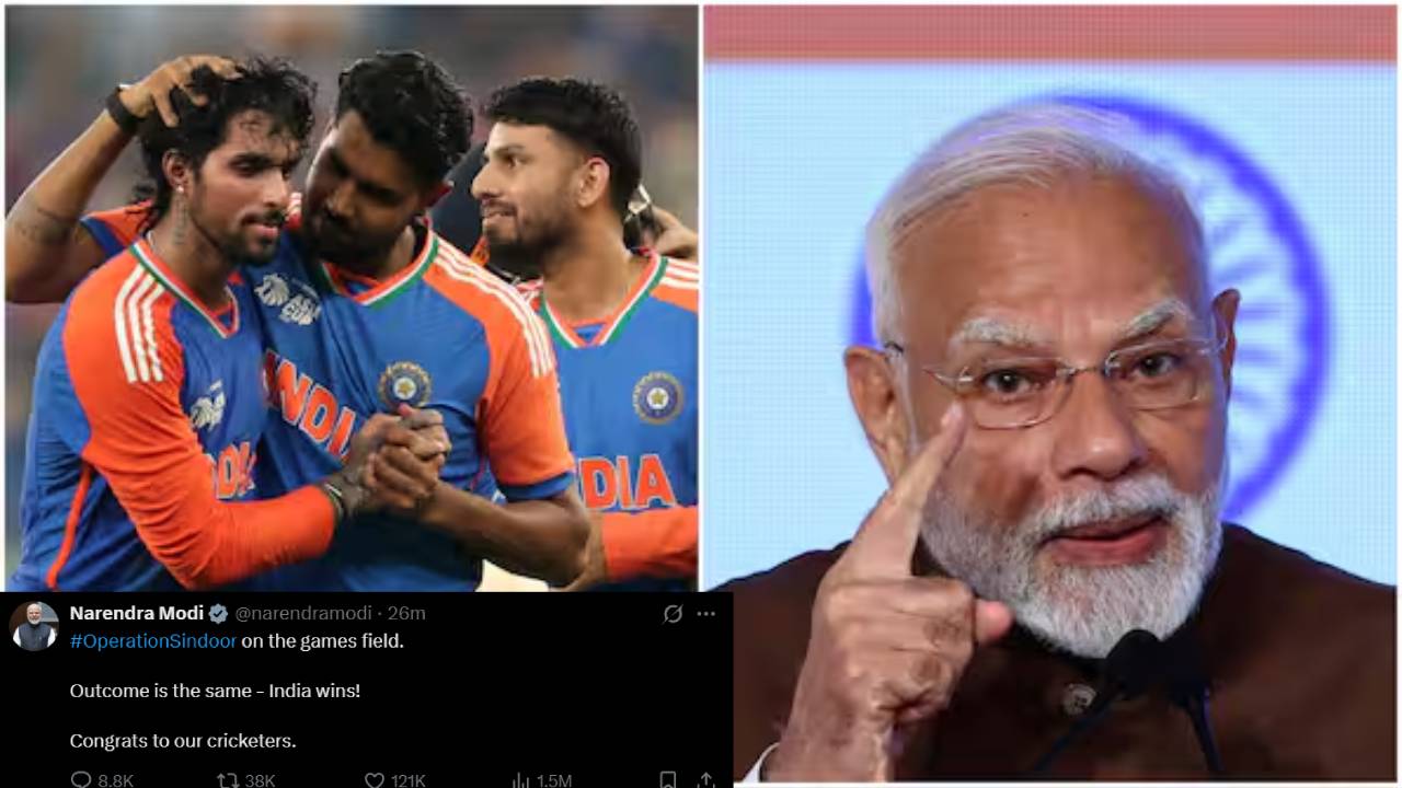 Pm Modi Tweet Asia Cup Win: एशिया कप में भारत की जीत के बाद पीएम नरेंद्र मोदी के ट्वीट ने पाकिस्तान को ऑपरेशन सिंदूर की वह डराने वाली रात को फिर ताजा कर दिया है। उस रात को भारत के लड़ाकू विमान ने पाकिस्तान और पीओके के टेरर कैंपों में बम बरसाकर तबाह किया था। पीएम मोदी के इस ट्वीट से पाकिस्तान को मिर्ची लगी है और उसने कहा कि भारत ने आखिरी उम्मीद भी खत्म कर दी है। एशिया कप के फाइनल मुकाबले में भारत ने पाकिस्तान को 5 विकेट से हराकर 9वीं बार खिताब अपने नाम किया। इसके बाद सारा देश जश्न में डूब गया तो इधानमंत्री नरेंद्र मोदी ने एक्स पर लिखा, "खेल के मैदान पर ऑपरेशन सिंदूर, नतीजा वही है- भारत ने फिर से जीत दर्ज की है, हमारे क्रिकेटरों को बधाई."